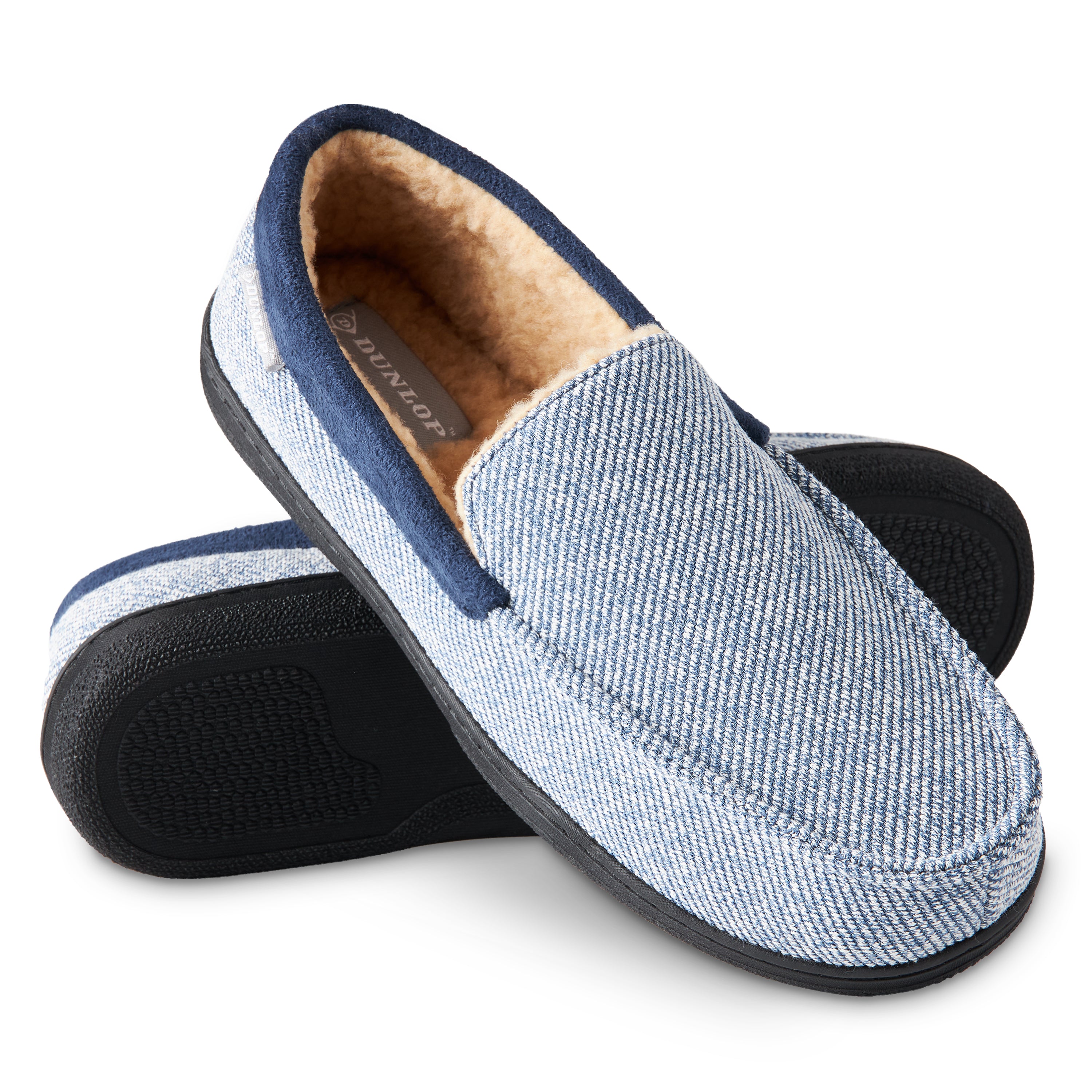 DUNLOP Moccasins Slippers Men Loafers Faux Fur Slippers Rubber Sole Memory Foam
