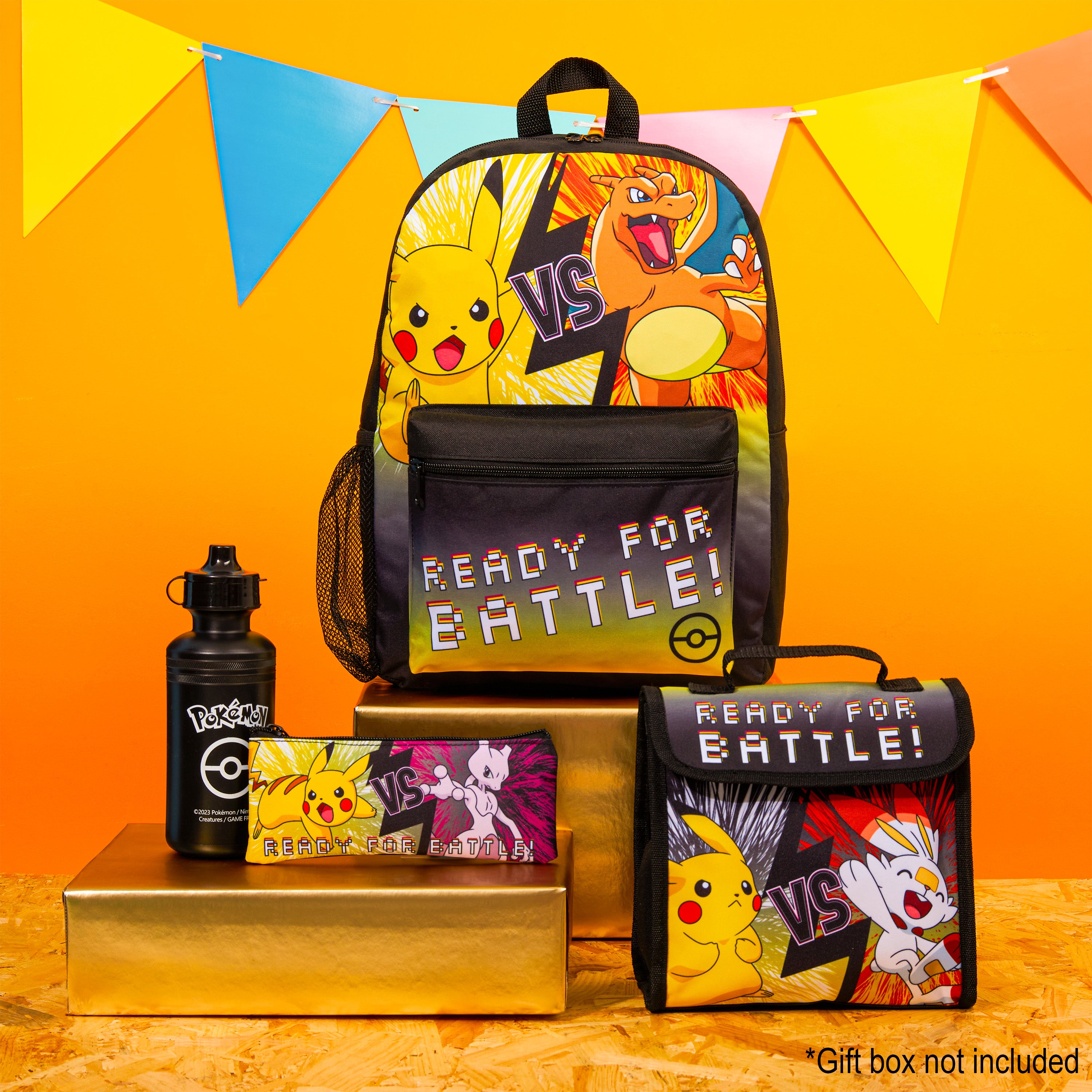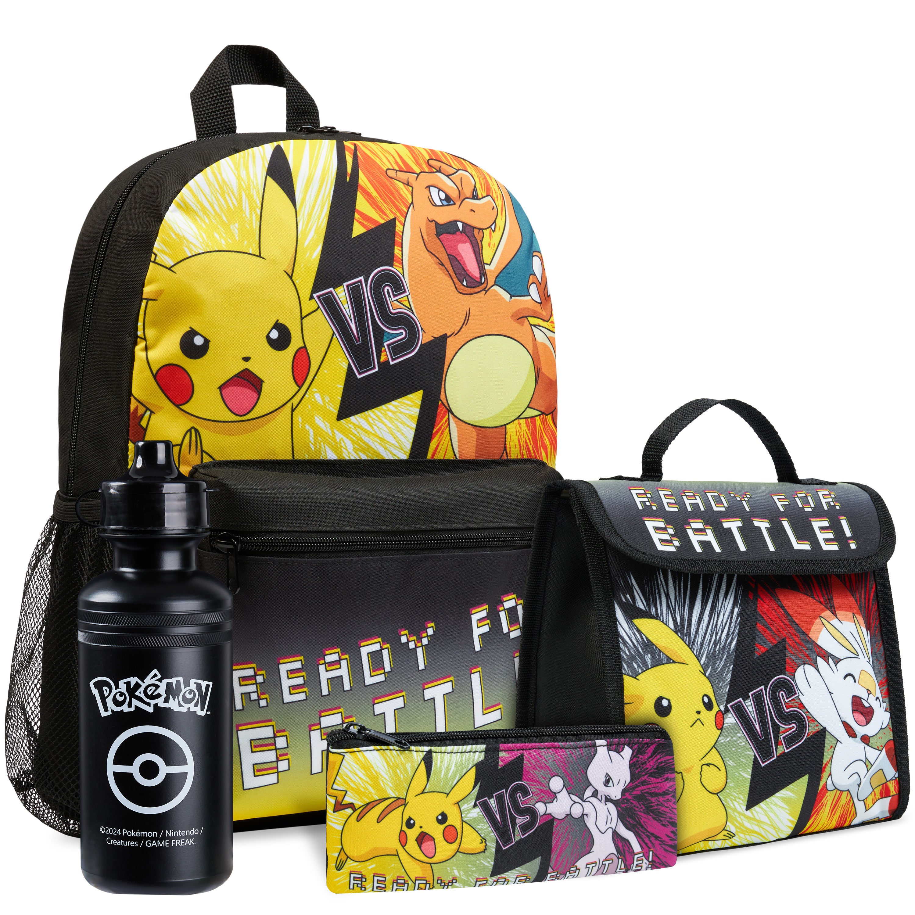 Pokemon 4 Piece Set: Backpack, Lunch Bag, Pencil Case & Water Bottle Set for Kids