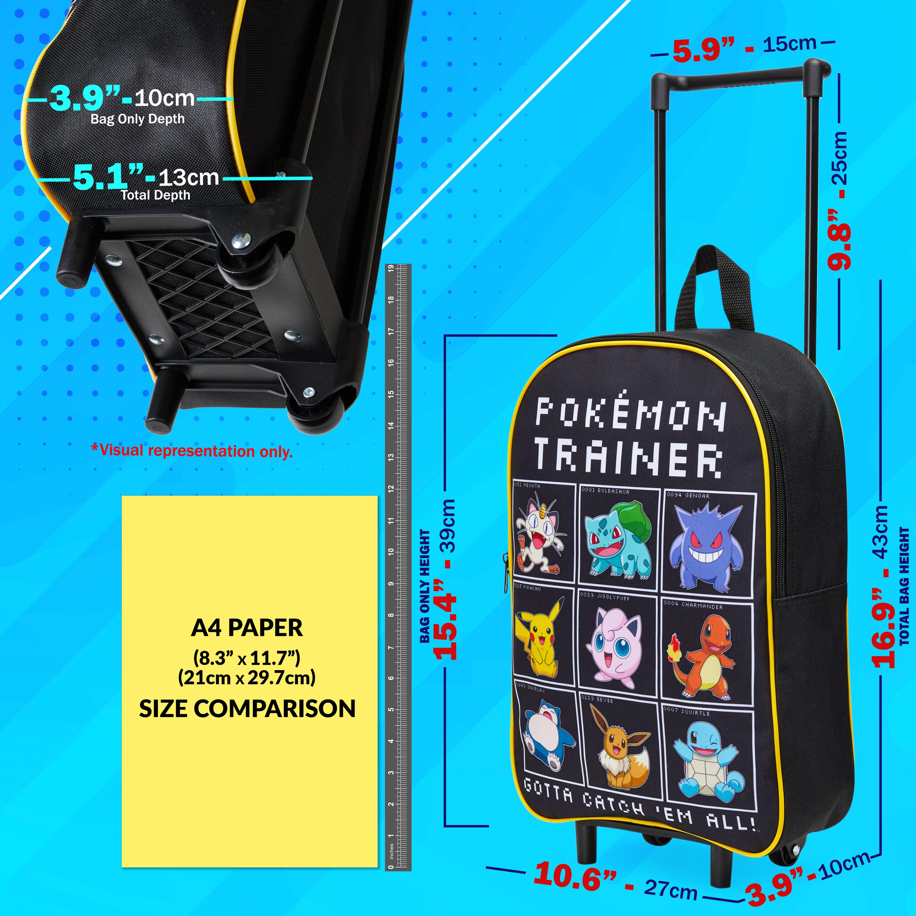 Pokemon Kids Foldable Trolley Suitcase 39 x 27cm, 10.5 litres 2 Wheels (Black/Multi)